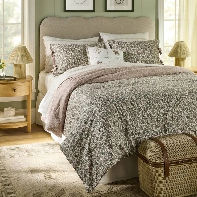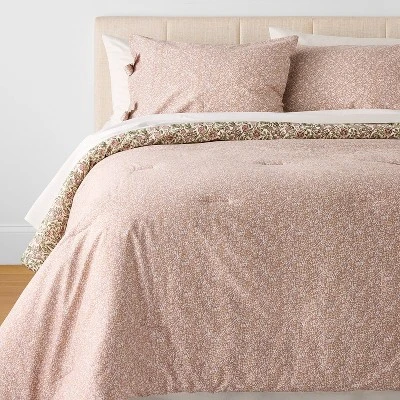 Give your sleeping nook a garden-inspired upgrade with this 3-Piece Reversible Floral Comforter Set from Threshold™ designed with Studio McGee. This multi-piece bedding set is made from midweight cotton with polyester filling and includes a comforter and two standard pillow shams boasting a reversible floral design for versatile use. The comforter is filled with soft padding, and a convenient 6-inch envelope closure on the shams allows for secure pillow placement and easy removal.