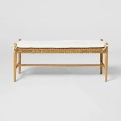 Corallina Upholstered Wooden Bench Natural Wood/Dark Brown – Threshold™ Designed With Studio McGee