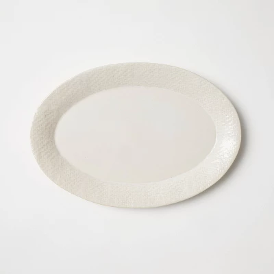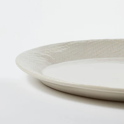Serve guests in sophisticated style using the Stoneware Ceramic Oval Serving Platter from Threshold™ designed with Studio McGee. This cream serving platter features a woven-like texture along the rim for an elegant look. Great for everyday dining or hosting guests, this oval serving platter help provide a perfect base for your appetizers, salads and entrees. It can be tossed in the dishwasher for easy cleaning, and it’s also microwave safe for easy reheating of food. Plus, it boasts a scratch-resistant design for lasting use.